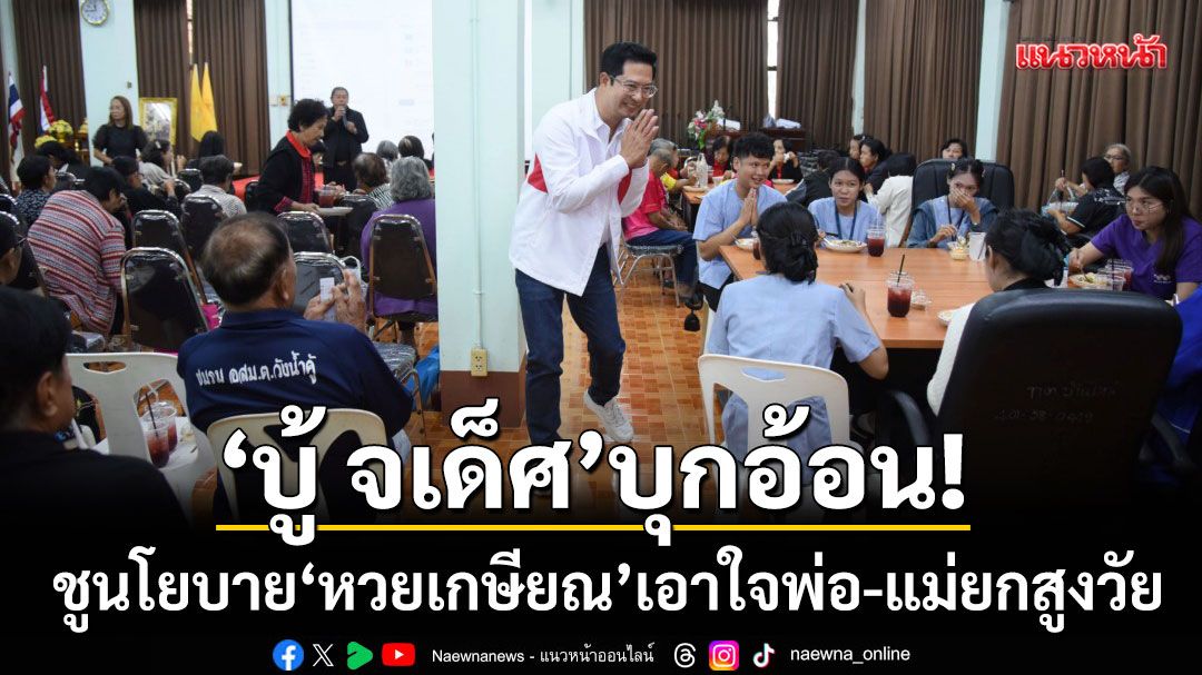 ‘บู้’ จเด็ศ จันทรา อ้อนขอคะแนนชาวพิษณุโลก กาเบอร์ 4 เข้าสภาฯสานงานต่อเนื่อง เอาใจพ่อยกแม่ยกสูงวัย ชูนโยบาย ‘หวยเกษียณ’ พ่วงเศรษฐีเงินล้าน-คนไทยไร้จน