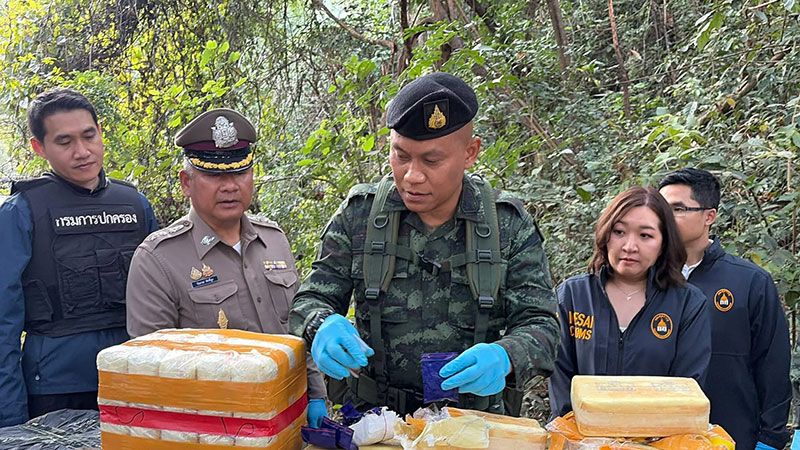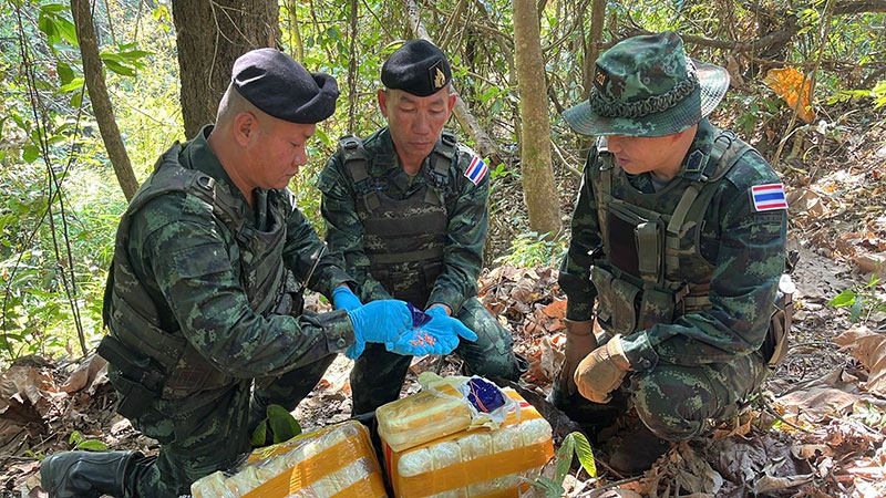 30 มกราคม 2569 เมื่อเวลา 12.30 น. เจ้าหน้าที่ทหาร ร้อย.ม.3 ฉก.ทัพเจ้าตาก กองกำลังผาเมือง จัดกำลังพร่วมกับชุดปฏิบัติการ ร้อย.คทร.กองกำลังเมือง ทำการ เฝ้าตรวจตามแนวชายแดนไทย-เมียนมา ด้าน อ.แม่สาย จ.เชียราย เพื่อป้องกันและสกัดกั้นการกระทำผิดตาม พ.ร.บ.ยาเสพติดฯ กระทั่งเมื่อตรวจตราไปถึงบริเวณป่าเขาพื้นที่หมู่บ้านห้วยน้ำริน หมู่ 7 ต.เวียงพางคำ อ.แม่สาย จ.เชียงราย ได้ตรวจพบกลุ่มบุคคลต้องสงสัยจำนวนกว่า 30-35 คน พากันแบกกระสอบฟางดัดแปลงเดินลัดเลาะเข้ามาจากแนวชายแดนฝั่งไทยอย่างมีพิรุธ
