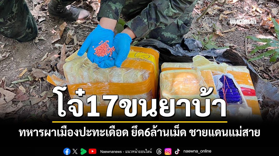 ต่อมาเวลา 17.00 น.พ.อ.ธวัฒน์ อินกอง รอง ผบ.ฉก.ทัพเจ้าตาก กองกำลังผาเมือง จึงได้เข้าตรวจสอบพื้นที่ปะทะผลปรากฎว่าสามารถจับกุมผู้ต้องหาเป็นเยาวชนชายได้จำนวน 1 ราย โดยมีอายุเพียง 17 ปี ชาวสัญชาติเมียนมา นอกจากนี้พบกระสอบฟางดัดแปลงตกกระจัดกระจายไปตามแนวป่าจำนวน 30 ใบ เมื่อตรวจสอบภายในพบว่าบรรจุยาเสพติดให้โทษประเภทที่ 1 (ยาบ้า) กระสอบละประมาณ 200,000 เม็ด รวมของกลางยาบ้าทั้งหมดประมาณ 6,000,000 เม็ด