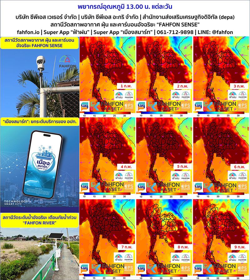 วันที่ 31 มกราคม 2569 เพจเฟซบุ๊ก พยากรณ์อากาศประเทศไทย โพสต์ภาพพยากรณ์อากาศประเทศไทย ตั้งแต่วันที่ 1 กุมภาพันธ์ 2569 ถึง 9 กุมภาพันธ์ ช่วงเวลา 13.00 น. ของแต่ละวัน