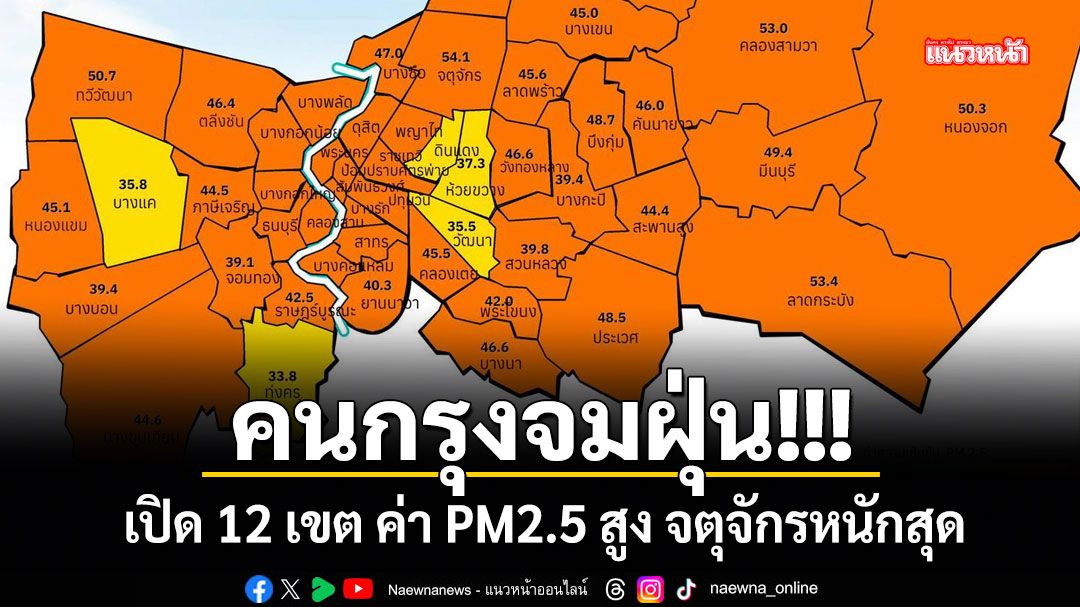 12 อันดับ ของค่าฝุ่น PM2.5 พื้นที่สูงสุดในกรุงเทพมหานคร