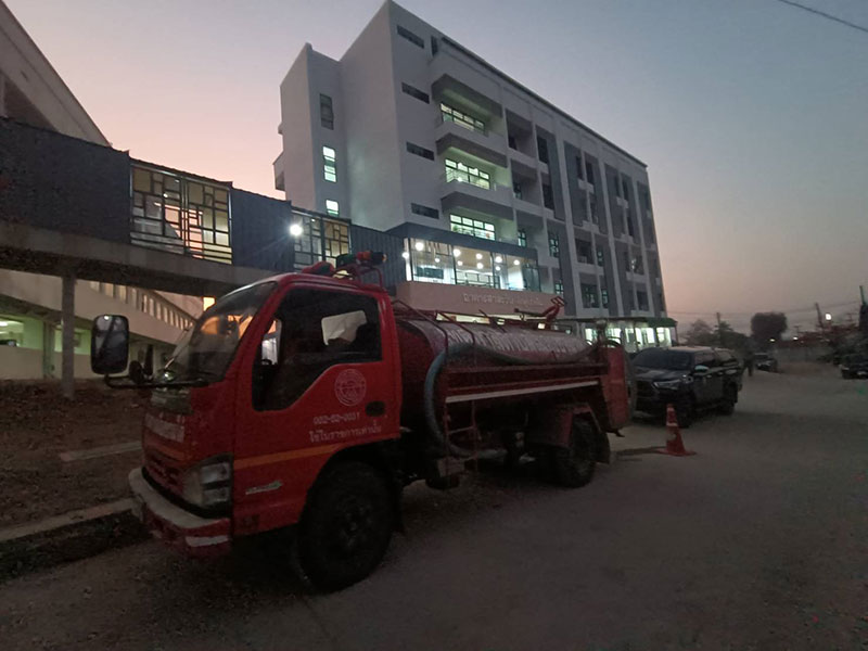 โดยชุดกู้ชีพ-กู้ภัยแม่สะเรียง และชุดบรรเทาสาธารณภัยเทศบาลตำบลแม่สะเรียง ได้รับแจ้งเหตุและขอสนับสนุนกำลังคน พร้อมรถดับเพลิง ในการเข้าระงับเหตุไฟไหม้ เมื่อไปถึงที่เกิดเหตุพบ ไฟไหม้อยู่ในห้องหมายเลข 3 ชั้นที่ 5 ของตึกสาละวิน ซึ่งเป็นห้องด้านในสุดของอาคาร จึงเข้าทำการสกัดเพลิงระงับเหตุไฟไหม้ โดยใช้เวลาประมาณ 1 ชม. ก็สามารถควบคุมเพลิงได้อย่างปลอดภัย และไม่ลุกลามห้องข้างเคียง มีเจ้าหน้าที่กู้ภัยสำลักควันไฟอยู่ 2 นาย