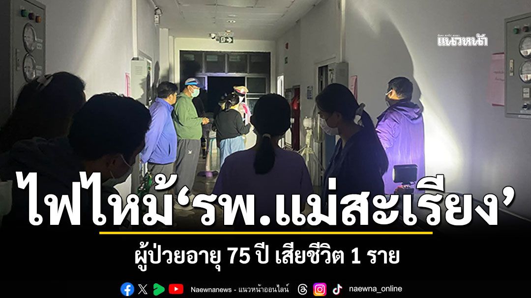 สลดเกิดเหตุไฟไหม้ตึกสาละวิน ห้องพิเศษ 3 ชั้น 5 โรงพยาบาลแม่สะเรียง อ.แม่สะเรียง จ.แม่ฮ่องสอน ทำให้มี ผู้เป่วยหนักสียชีวิต 1 ราย เจ้าหน้าที่อยู่ระหว่างการตรวจสอบหาสาเหตุ