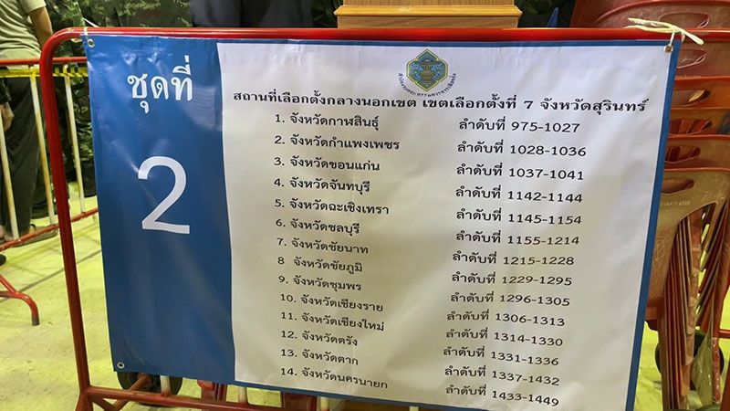 1 กุมภาพันธ์ 2569 ผู้สื่อข่าวรายงานบรรยากาศการเลือกตั้งล่วงหน้า สส.นอกเขต ที่หอประชุมอำเภอปราสาท อ.ปราสาท จ.สุรินทร์ ซึ่งเป็นพื้นที่เขตเลือกตั้งที่ 7 มีผู้ขอใช้สิทธิเลือกตั้งนอกเขตจำนวน 4,654 ราย กว่า 90 % เป็นทหารจากต่างจังหวัดทั่วประเทศ ที่มาประจำการอยู่ในพื้นที่จังหวัดสุรินทร์