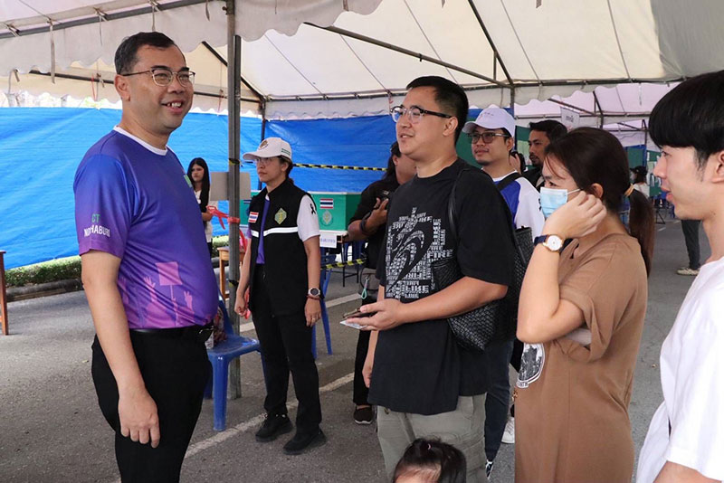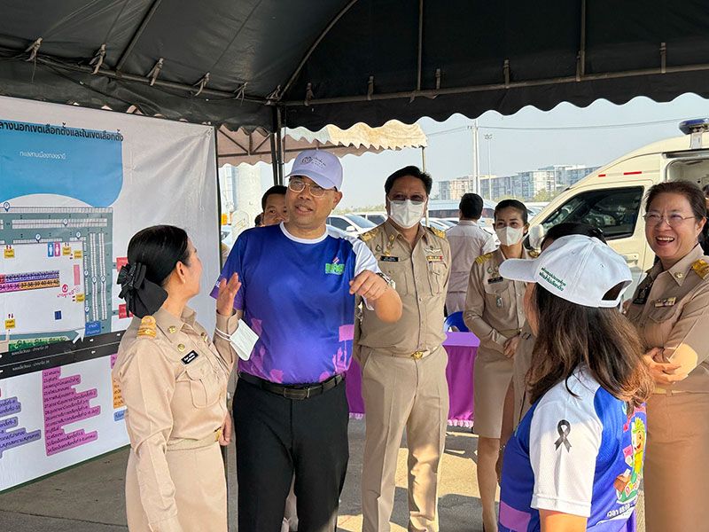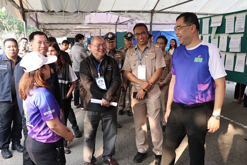 ต่อมาเวลา13.00 น.คณะได้เดินทางไปตรวจสอบสถานที่เลือกตั้งกลาง ที่เขต 4 ริมทะเลสาบเมืองทองธานี อ.ปากเกร็ด ซึ่งมีผู้ลงทะเบียนจำนวน 21,109 คน ต่อด้วยที่เขต5 วัดสาลีโขภิตาราม ต.บางพลับ อ.ปากเกร็ด จำนวน 6,130 คน ตามด้วยเขต 8 เทศบาลเมืองบางคูรัด อ.บางบัวทอง จำนวน 4,900 คน พบว่าการจราจร ถนนบางไผ่-หนองเพรางาย การจราจรติดขัดระยะทางยาวกว่า 5 กิโลเมตร โดยมีเจ้าหน้าที่ตำรวจ สภ.บางบัวทอง คอยอำนวยความสะดวกในด้านการจราจร