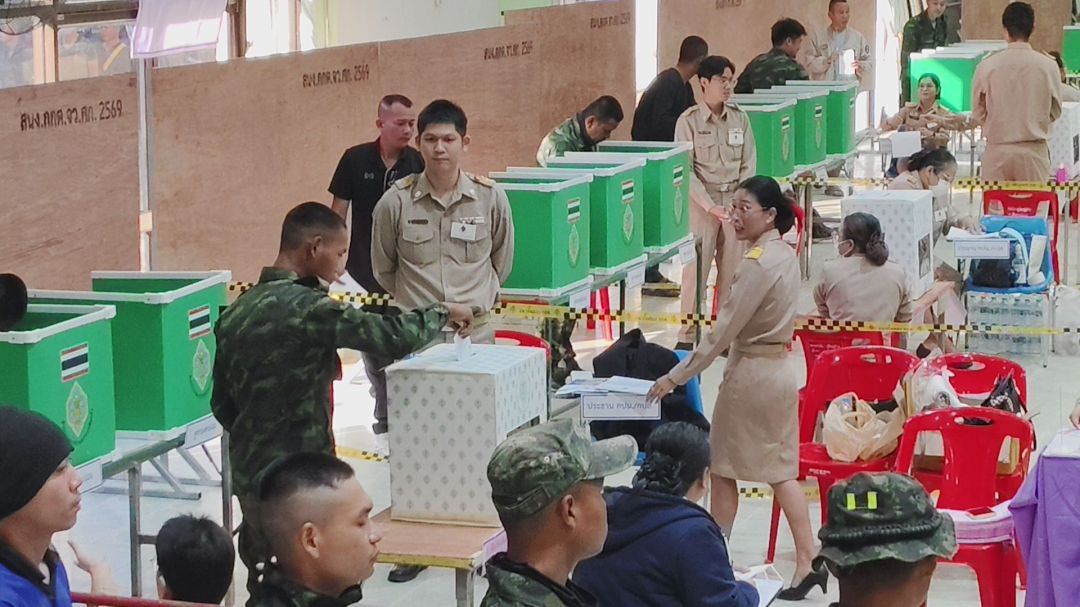 1 ก.พ.69 ที่หอประชุม อำเภอกันทรลักษ์ จังหวัดศรีสะเกษ ได้ใช้เป็นสถานที่เลือกตั้งกลางในเขตเลือกตั้งและนอกเขตเลือกตั้ง ซึ่งในช่วงเช้าที่ผ่านมา มีเจ้าหน้าที่ทหารที่ปฏิบัติหน้าที่ดูแลความมั่นคงตามแนวชายแดน เดินทางมาใช้สิทธิลงคะแนนเสียงเลือกตั้งล่วงหน้าอย่างต่อเนื่อง ทั้งการเลือกตั้งสมาชิกสภาผู้แทนราษฎรแบบแบ่งเขตและแบบบัญชีรายชื่อ ท่ามกลางบรรยากาศที่เป็นไปด้วยความเรียบร้อย