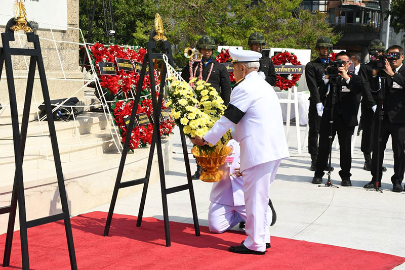 3 ก.พ.อนุสาวรีย์ชัยสมรภูมิ พระบาทสมเด็จพระเจ้าอยู่หัว ทรงพระกรุณาโปรดเกล้าโปรดกระหม่อมให้ พลเอก สุรยุทธ์ จุลานนท์ ประธานองคมนตรี เป็นผู้แทนพระองค์วางพวงมาลาเนื่องในวันทหารผ่านศึก
