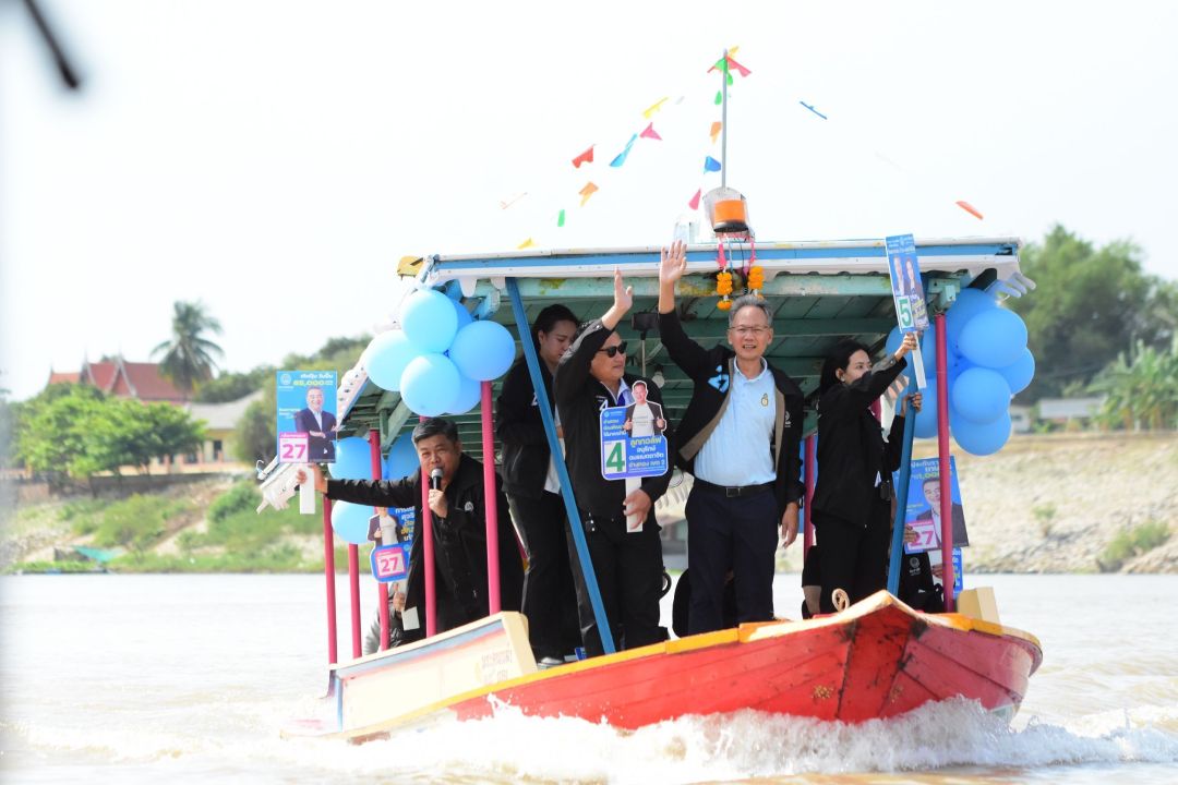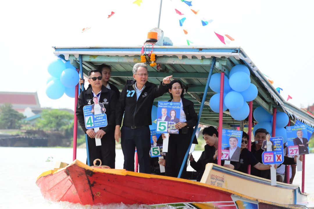 ปชป.ลุย จ.อ่างทอง หาเสียงทางน้ำ ช่วยหาเสียง ลูกกอล์ฟ ลูกนก ชูนโยบายดูแลผู้สูงอายุ–เกษตรกร–การศึกษา