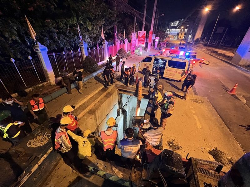 ทางด้านคนงานที่เห็นเหตุการณ์เล่าว่า ได้วางกรวยยาง ป้ายไฟ และแผงเหล็กกั้นไว้เรียบร้อยแล้ว แต่จู่ๆ นายสุปวีณ์ ผู้ประสบเหตุ อายุ 33 ปี ขี่รถพุ่งฝ่ากรวยยางขึ้นไปบนฟุตบาทก่อนจะร่วงลงไปในบ่อต่อหน้าต่อตา คนงานจึงรีบช่วยกันพานายสุปวีณ์ปีนกลับขึ้นมาด้านบนได้อย่างปลอดภัย