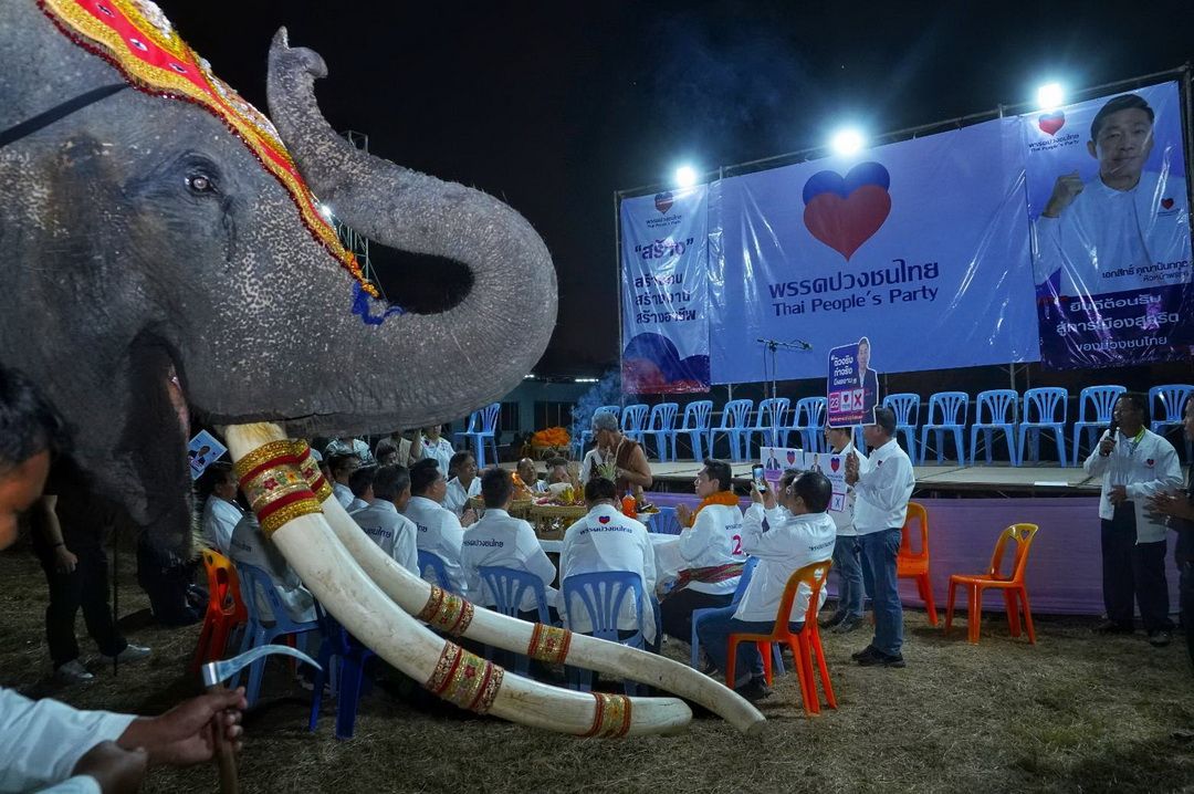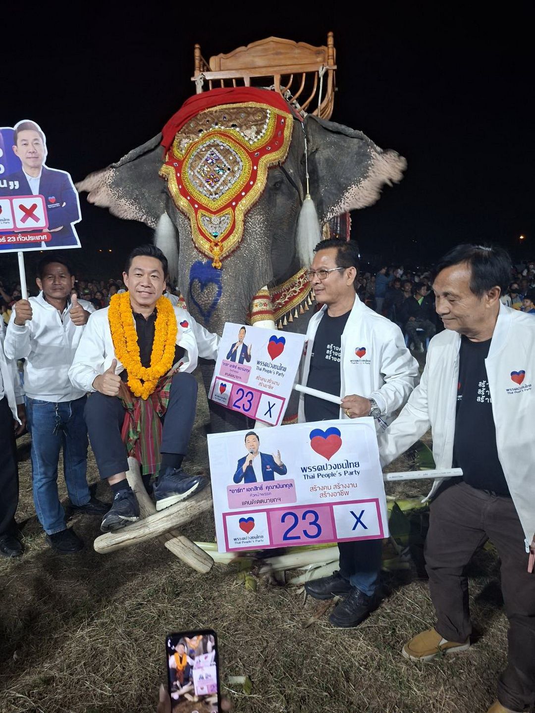 ในการนี้ชาวจังหวัดสุรินทร์ โดยนายเชิดชัย สังเกตุกิจ นายกสมาคมคนตาบอดจังหวัดสุรินทร์ และรักษาการนายกสมาคมคนตาบอดชาวอีสาน ซึ่งเป็นผู้สมัครสส. แบบบัญชีรายชื่อลำดับที่ 15 พรรคปวงชนไทย นำคณะชาวสมาคมคนตาบอดร่วมพันคน พร้อมด้วยผู้สมัคร สส.พรรคปวงชนไทย จังหวัดสุรินทร์ เขต 2 ถึงเขต 8 ได้นำช้างพลายเอกสิทธิ์ ซึ่งเป็นช้างพลายที่มีความสง่างามและมีชื่อเสียงของจังหวัดสุรินทร์ มาต้อนรับนายเอกสิทธิ์ และคณะพรรคปวงชนไทย นับว่าเป็นภาพประวัติศาสตร์และเป็นนิมิตหมายที่ดี ที่ ‘นายเอกสิทธิ์’ มีชื่อพ้องคล้องกันกับ ‘ช้างพลายเอกสิทธิ์’ ที่เป็นสัญลักษณ์ของการออกศึกและสัญลักษณ์ของชัยชนะ โดยก่อนขึ้นเวทีปราศรัยได้มีการทำพิธีเพื่อเรียกขวัญกำลังใจและเชื่อว่า ช้างพลายเอกสิทธิ์ จะนำชัยมายังพรรคปวงชนไทยในการเลือกตั้งครั้งนี้อย่างแน่นอน