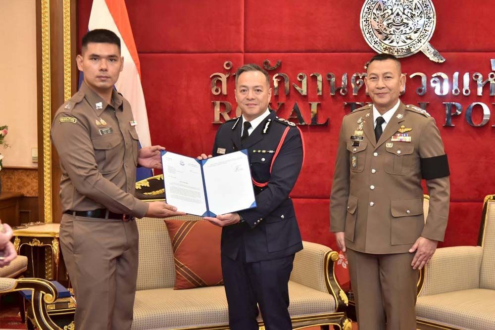 ในโอกาสเดียวกันนี้ ผบ.ตร.ฮ่องกง ได้มอบประกาศขอบคุณพร้อมของที่ระลึกแก่เจ้าหน้าที่ ตม.ไทย สังกัด บก.ตม.2 หรือ ตม.สนามบิน ที่จับคดีใหญ่ 2 รายดังกล่าว จำนวน 28 นาย อาทิ พ.ต.อ.พงศ์ธร พงศ์รัชตนันทน์ รอง ผบก.ตม.2, พ.ต.อ.ณัฐกิตติ์ มีสุข ผกก.ตม.จว.ปทุมธานี ( เมื่อครั้งเป็น ผกก.สส.ปป.บก.ตม.2 ), พ.ต.อ.หญิง เนาวรัตน์ เฉลิมศรี ผกก.ฝ่าย ตม.ขาเข้า ด่าน ตม.ทอ.สุวรรณภูมิ และ พ.ต.อ.กฤษณ์ ฉัตรทวี ผกก.ฝ่ายพิธีการเข้าเมือง ด่าน ตม.ทอ.สุวรรณภูมิ รวมถึงชุดจับกุม ทั้งส่วนงานขาเข้า สืบสวน และฝ่ายพิธีการ ตม. ที่มีหน้าที่ผลักดันส่งกลับ เพื่อเป็นเกียรติและขวัญกำลังใจแก่ผู้ปฏิบัติงาน