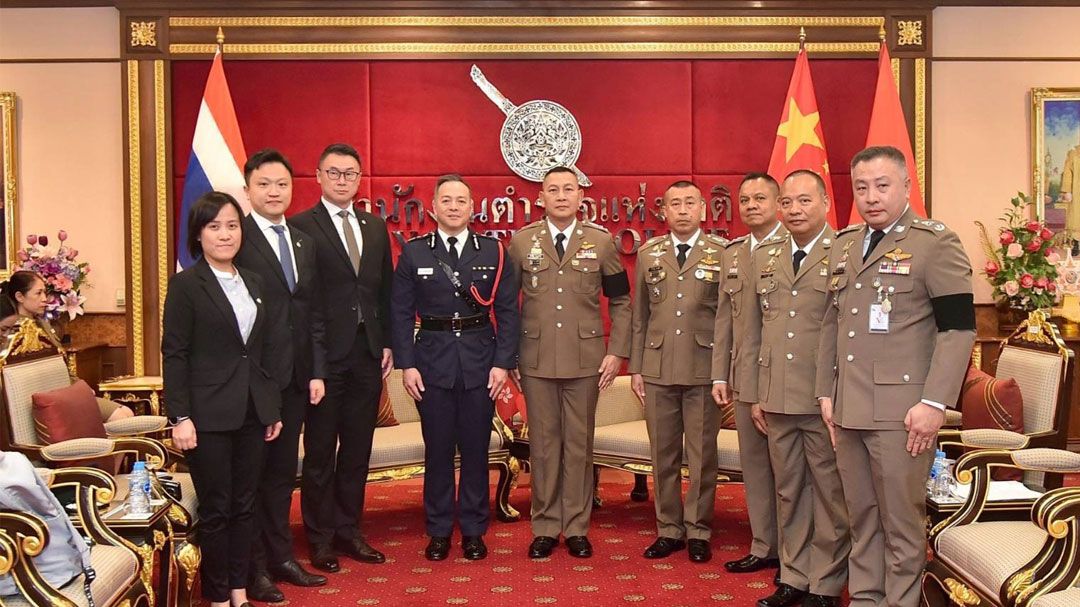 การเข้าพบครั้งนี้ เพื่อแสดงความขอบคุณอย่างเป็นทางการต่อตำรวจไทย กรณีเมื่อ มิ.ย.2568 ด่าน ตม.สุวรรณภูมิ ได้สกัดจับโจรลักทรัพย์สินค้าแบรนด์เนมมูลค่ากว่า 10 ล้าน บินจากฮ่องกงมาไทย รวมถึงกรณีคนร้ายต้องสงสัยก่อคดีฆ่าในฮ่องกง ที่บินหลบหนีมาไทย ก็ถูก ตม. ไทยสกัดจับได้ที่สนามบินเช่นกัน