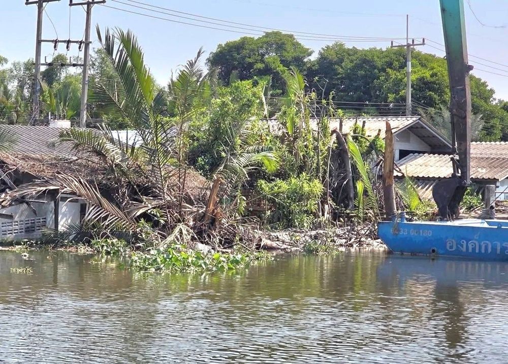 นายก อบจ.สมุทรสาครสั่งลุยปั้นดินบล็อกน้ำ ‘คลองสุนัขหอน’ ไหลทะลักท่วมถนนพระราม 2
