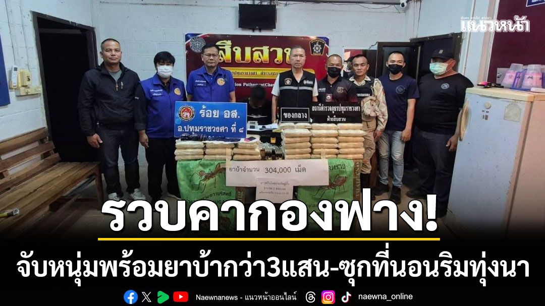 รวบคากองฟาง! ตร.ปทุมราชวงศา บุกจับหนุ่มวัย 21 ยึดยาบ้ากว่า 3 แสนเม็ด ซุกใต้อุโมงค์ที่นอนริมทุ่งนา