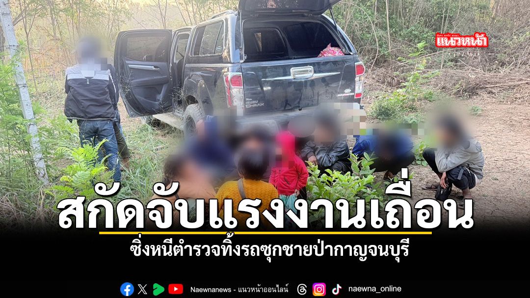 ต่อมาเมื่อเช้าวันนี้ 5 ก.พ. 69 เวลาประมาณ 07.00 น. เจ้าหน้าที่ตำรวจทางหลวง ส.ทล.6 กก.2 บก.ทล ออกปฏิบัติหน้าที่ ได้พบรถยนต์ต้องสงสัย มีลักษณะบรรทุกหนักและใช้ความเร็วสูง จำนวน 1 คัน วิ่งมาบนถนน ทล.323 เส้นสังขละบุรี-กาญจนบุรี เมื่อมาถึงช่วง ทล.323 กม. 85 ต.วังด้ง อ.เมือง จ.กาญจนบุรี รถยนต์คันดังกล่าวได้ทำการเร่งเครื่องยนต์เพื่อหลบหนี โดยใช้เส้นทางเลี้ยวซ้ายไปทางลาดหญ้า แล้วมุ่งหน้าไปทางหมู่บ้านท่าหวี วัดเย็นสนิท เข้าเส้นทางวัดเมตตาธรรม ทล, 3229 เลี้ยวซ้ายเข้าหมู่5 ต.หนองหญ้า อ.เมือง จ.กาญจนบุรี จนมาถึงริมชายป่า ม.5 ต.หนองหญ้า อ.เมือง จ.กาญจนบุรี และรถคันดังกล่าวได้หยุดรถ ก่อนคนขับจะได้หลบหนีไป เจ้าหน้าที่ชุดจับกุมจึงทำตรวจสอบภายในรถ จากการตรวจสอบพบว่า มีบุคคลต่างด้าวจำนวน 13 คน