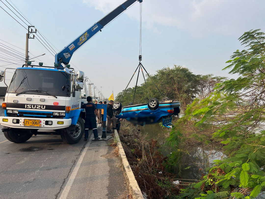 สลดคาสายมือถือ! ‘หนุ่มขับเก๋งตกคลอง’ เมียตามหาทั้งคืน-สุดท้ายพบเป็นร่างไร้วิญญาณ