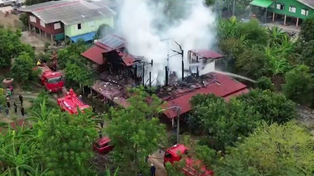 ในที่เกิดเหตุ พบเพลิงกำลังลุกไหม้อย่างรุนแรงที่บ้านลักษณะ 2 ชั้น ด้านล่างเป็นปูนและด้านบนเป็นไม้ ซึ่งเป็นเชื้อเพลิงอย่างดี เจ้าหน้าที่ดับเพลิงได้ระดมฉีดน้ำเพื่อสกัดกั้นไม่ให้เพลิงลุกลามไปยังบ้านข้างเคียง โดยใช้เวลาประมาณ 30 นาที จึงสามารถควบคุมเพลิงให้สงบลงได้ จากการตรวจสอบเบื้องต้นพบว่าโครงสร้างไม้ที่ชั้น 2 ถูกไฟไหม้เสียหายทั้งหมด