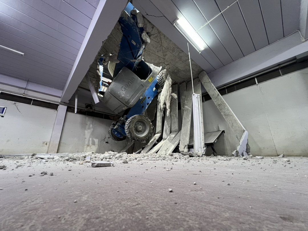 สลดโรงยิมเมืองตรัง! พื้นถล่มดูดรถกระเช้าดิ่งชั้น 1 เหวี่ยงคู่สามีภรรยาคนงาน-ตกกระแทกพื้นดับคู่