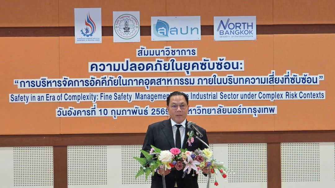 วันที่ 10 ก.พ. 2569 มหาวิทยาลัยนอร์ทกรุงเทพ ร่วมกับกรมโรงงานอุตสาหกรรม สมาคมวิศวกรรมความปลอดภัย และสถาบันส่งเสริมความปลอดภัยฯ (สสปท.) จัดงานสัมมนาวิชาการหัวข้อ ‘ความปลอดภัยในยุคที่ซับซ้อน: การบริหารจัดการอัคคีภัยในภาคอุตสาหกรรม ภายใต้บริบทความเสี่ยงที่ซับซ้อน’ ณ มหาวิทยาลัยนอร์ทกรุงเทพ วิทยาเขตรังสิต เพื่อเสริมสร้างองค์ความรู้ให้แก่ผู้ประกอบการและเจ้าหน้าที่ความปลอดภัย (จป.)