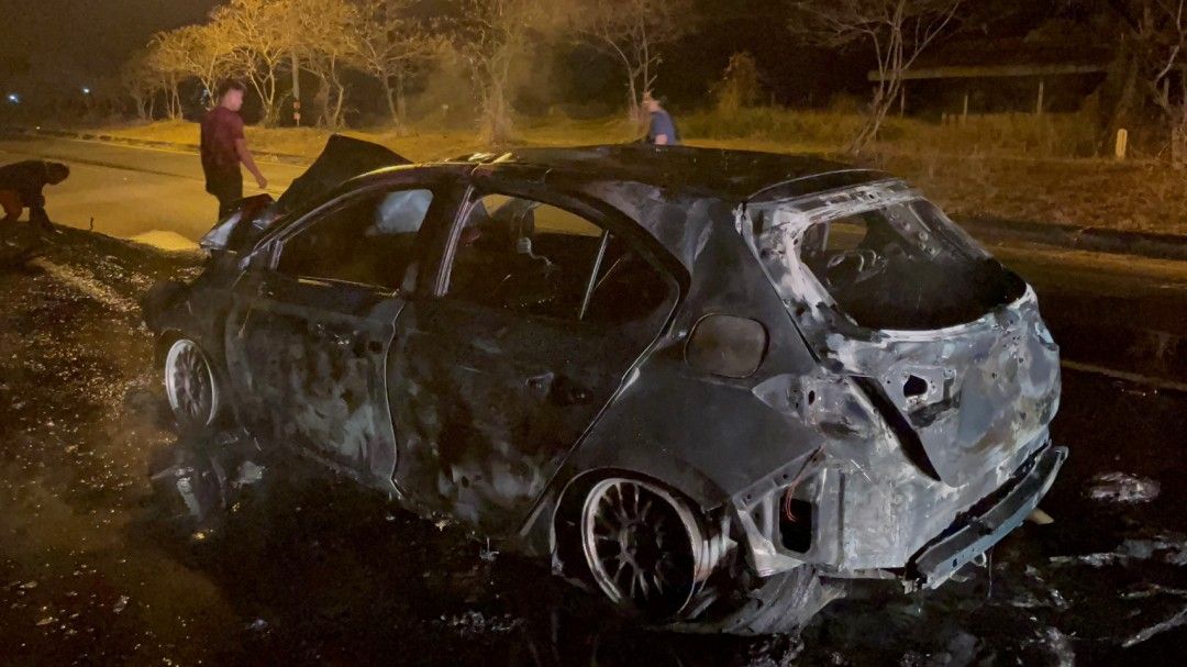 หลังการชนเพียงครู่เดียว มีกลุ่มควันพุ่งออกมาจากห้องเครื่องและเริ่มมีไฟลุกไหม้จากด้านหน้า คนขับจึงรีบคว้าโทรศัพท์เพียงอย่างเดียวแล้ววิ่งหนีออกจากรถทันที ก่อนที่ไฟจะโหมไหม้ท่วมตัวรถอย่างรวดเร็วต่อหน้าต่อตา