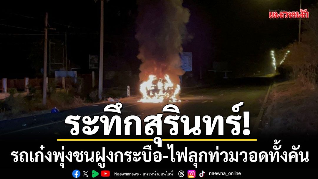 ระทึกสุรินทร์! รถเก๋งพุ่งชนฝูงกระบือข้ามถนนพังยับ ก่อนไฟลุกท่วมวอดทั้งคัน-คนขับวิ่งหนีรอดหวุดหวิด
