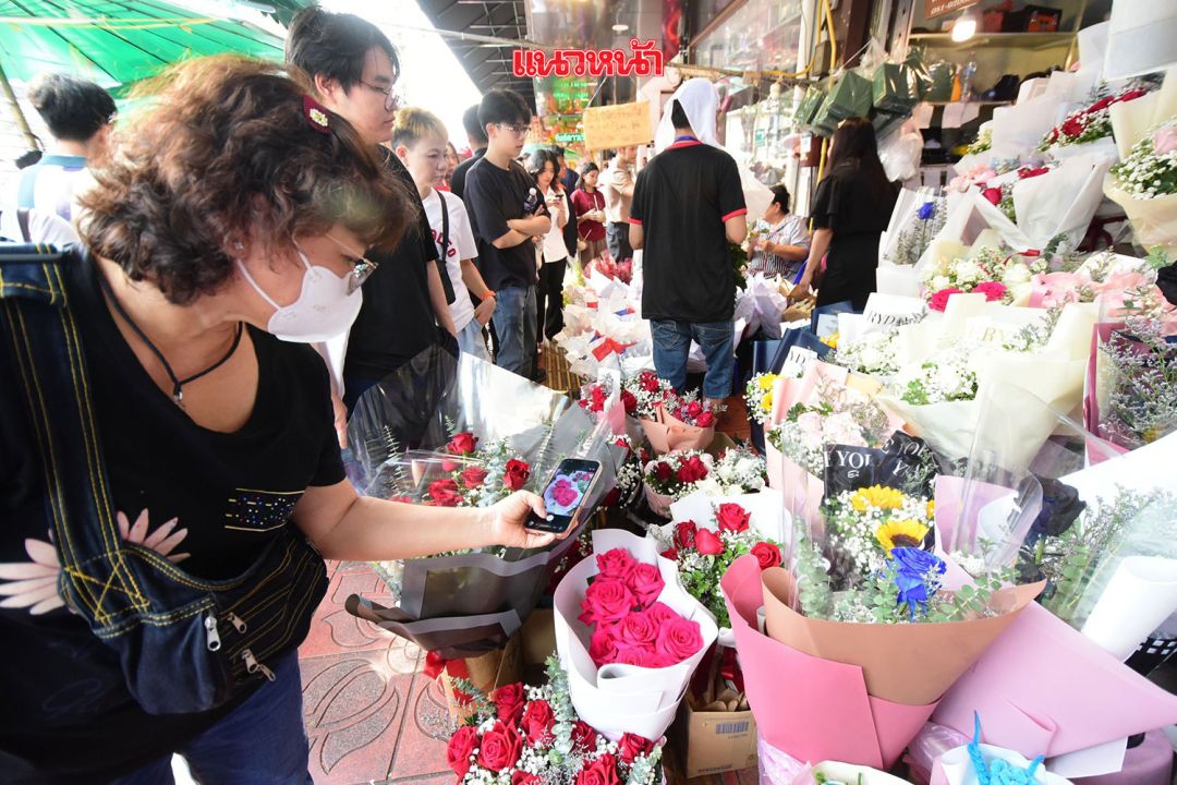 ผู้ค้าในย่านปากคลองตลาด ระบุว่า ปีนี้บรรยากาศกลับมาคึกคักกว่าปีที่ผ่านมา มียอดสั่งจองล่วงหน้าและลูกค้า Walk-in เข้ามาอย่างต่อเนื่องตลอดทั้งวัน คาดว่าตลอดช่วงเทศกาลนี้จะมีเงินสะพัดในพื้นที่ไม่ต่ำกว่าหลายล้านบาท โดยกลุ่มลูกค้าหลักยังคงเป็นนักเรียน นักศึกษา และคนทำงานที่ต้องการหาของขวัญแทนใจให้ทั้งคนรักและเพื่อนสนิท