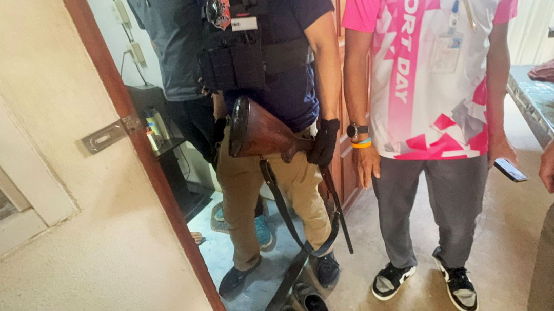 เจ้าหน้าที่พบว่าผู้ก่อเหตุคือ นายไสว อายุ 85 ปี หลบซ่อนตัวอยู่ในบ้านซึ่งมีรั้วรอบขอบชิด เจ้าหน้าที่จึงทำการปิดล้อมพื้นที่เพื่อความปลอดภัย ต่อมา นายฉัตรชัย เย็นทรวง ปลัดอำเภอป่าโมก ได้โทรศัพท์เจรจาเกลี้ยกล่อมจนนายไสวใจอ่อน ยอมวางอาวุธปืนลูกซองยาวและเดินออกมามอบตัว เจ้าหน้าที่จึงเข้าควบคุมตัวพร้อมยึดของกลางปืนลูกซองและปลอกกระสุนที่ยิงไปแล้ว 1 นัดภายในห้องนอน