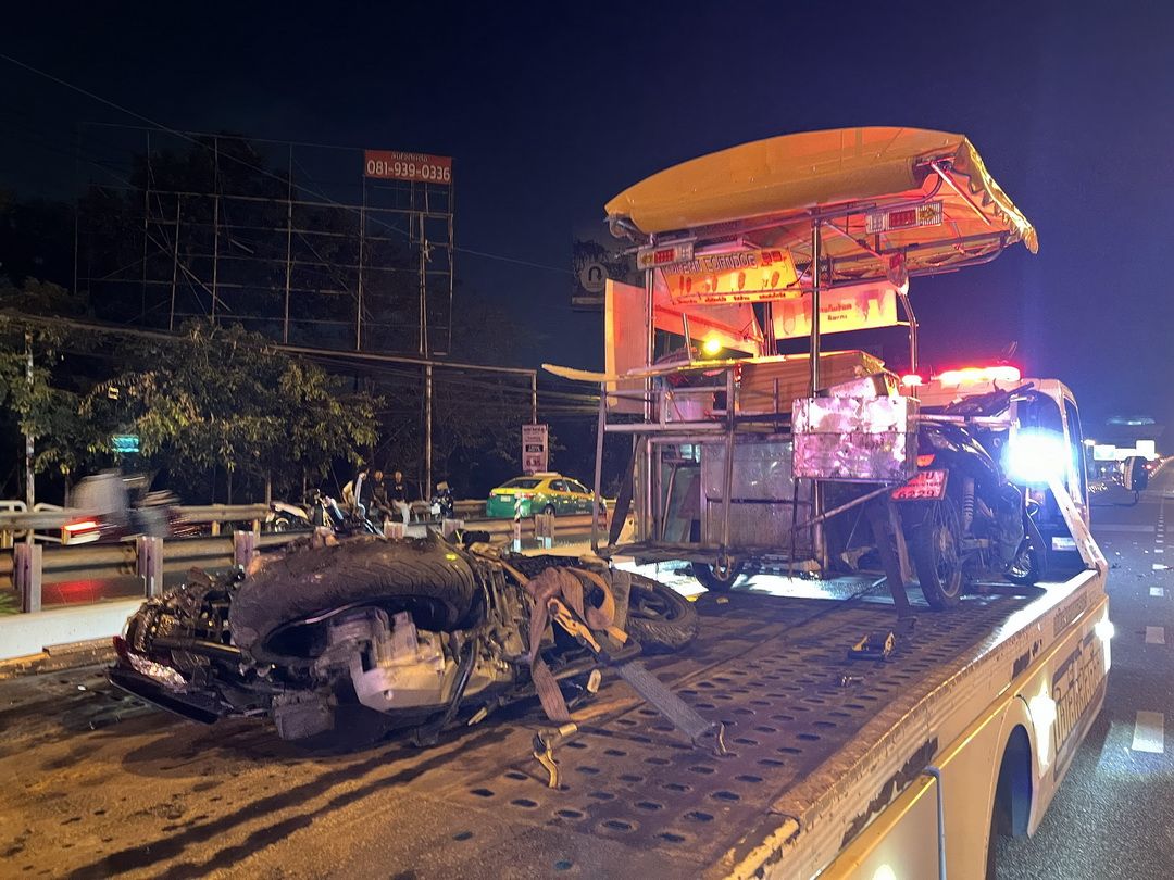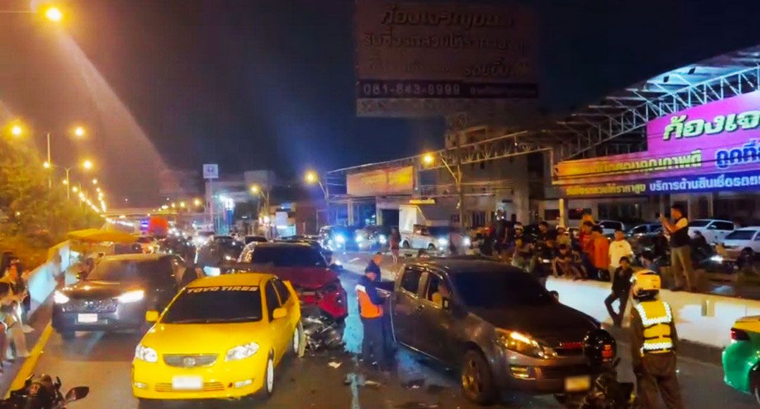 ระทึกวาเลนไทน์! อุบัติเหตุซ้ำซ้อนถนนนครอินทร์ รถชนยับ 10 คันรวด บาดเจ็บ 6 ราย หลัง จยย. เฉี่ยวกันตัดหน้ารถพ่วง 18 ล้อ