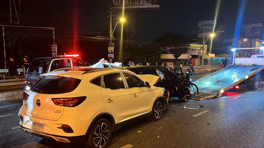ในที่เกิดเหตุพบรถบรรทุกพ่วง 18 ล้อ ยี่ห้อฮีโน่ สภาพเบรกจอดนิ่ง โดยมีรถยนต์เก๋ง 3 คันชนท้ายต่อกันยับเยิน ใกล้กันพบรถจักรยานยนต์พ่วงข้างขายของล้มคว่ำ และรถจักรยานยนต์อีก 1 คันพังเสียหาย นอกจากนี้ ห่างออกไปประมาณ 50 เมตร ยังพบรถยนต์เก๋ง รถกระบะ และรถจักรยานยนต์ชนกันอีก 4 คัน รวมรถที่ได้รับความเสียหายทั้งสิ้น 10 คัน ผู้บาดเจ็บทั้งหมด 6 ราย เจ้าหน้าที่เร่งนำส่งโรงพยาบาลใกล้เคียง