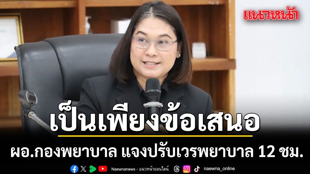 ผอ.กองการพยาบาล แจงปรับเวรพยาบาลเป็น 12 ชม. เป็นเพียงข้อเสนอ ช่วยลดการควบเวร 16 ชม. มีชั่วโมงพัก/วันหยุดนานขึ้น การใช้จริงต้องถามความสมัครใจก่อน