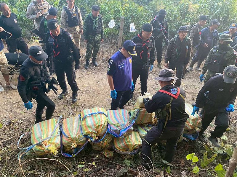 16 กุมภาพันธ์ 2569 เมื่อวันที่ 15 กุมภาพันธ์ ที่ผ่านมา เจ้าหน้าที่ร้อย ทพ.3102 บก.ควบคุม ทพ.ศปก.ทภ.3 ได้รับแจ้งจากแหล่งข่าวความมั่นคงว่าจะมีการลักลอบลำเลียงยาเสพติดล็อตใหญ่เข้ามาในพื้นที่ตำบลท่าตอน อำเภอแม่อาย จังหวัดเชียงใหม่ จึงได้รีบจัดกำลังพลเข้าตรวจสอบพื้นที่เป้าหมายอย่างเร่งด่วน จากการปูพรมตรวจค้นเบื้องต้นพบกระสอบลักษณะคล้ายเป้สะพายหลังจำนวน 19 ใบ ซุกซ่อนอยู่ในพื้นที่ดังกล่าวตามที่ได้รับรายงาน