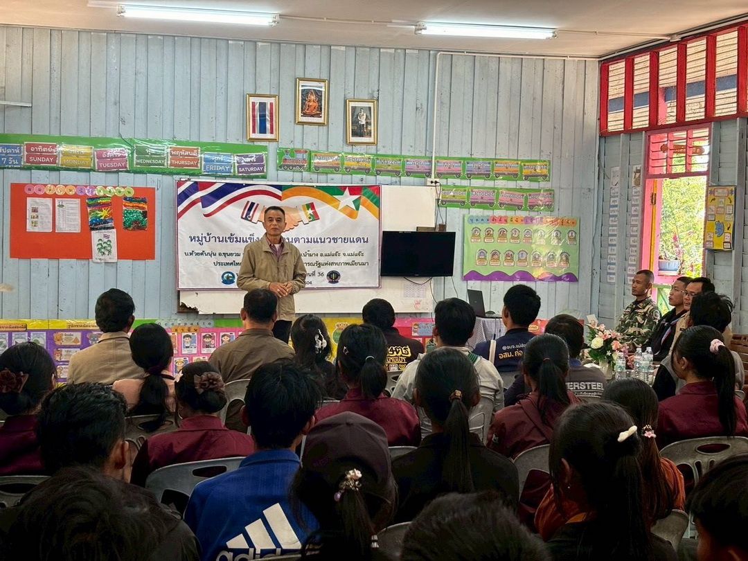 วันที่ 15 กุมภาพันธ์ 2569 ที่บ้านห้วยต้นนุ่น ต.แม่เงา อ.ขุนยวม จ.แม่ฮ่องสอน นายอุดม หมั่นศึกษา กำนันตำบลแม่เงา พร้อมด้วยราษฎรไทย 20 คน และเจ้าหน้าที่กองร้อยทหารพรานที่ 3604 ร่วมกับชุดพัฒนาสัมพันธ์มวลชน ได้จัดกิจกรรมส่งเสริมความสัมพันธ์ระหว่างประเทศสมาชิก ‘หมู่บ้านเข้มแข็งคู่ขนานไทย-เมียนมา’