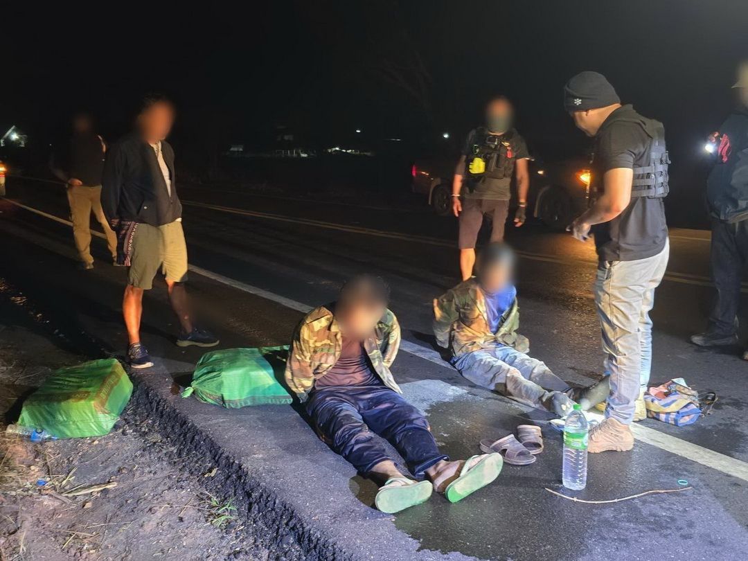 เมื่อเจ้าหน้าที่แสดงตัวเข้าตรวจค้น ทั้ง 3 คนพยายามวิ่งหลบหนี แต่เจ้าหน้าที่สามารถควบคุมตัวไว้ได้ 2 คน คือ ท้าวเตียงคำ (อายุ 27 ปี) และ ท้าวบุนเลิด (อายุ 33 ปี) ทั้งคู่เป็นชาวบ้านนาพาน เมืองไซพูทอง แขวงสะหวันนะเขต สปป.ลาว ส่วนอีก 1 รายอาศัยความมืดหลบหนีไปได้