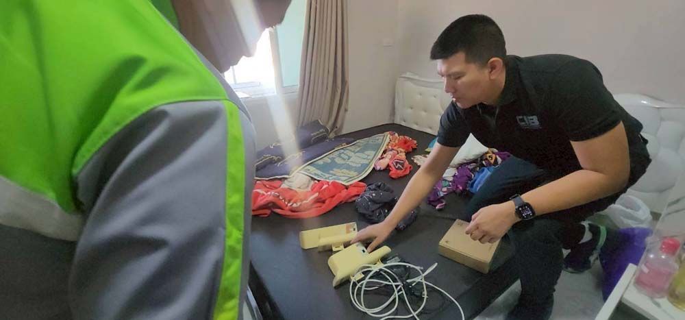 .ต.ท.อโนธร ศรีทองใบ, พ.ต.ท.หญิง เยาวลักษณ์ สุขทัศน์, พ.ต.ท.ณัฐพล แต่เจริญ และ พ.ต.ท.พงษ์ธร โปนกแก้ว รอง ผกก.กลุ่มงานสนับสนุนคดีเทคโนโลยี บก.ปอท.เจ้าหน้าที่ชุดตรวจค้น กลุ่มงานสนับสนุนฯ บก.ปอท. นำโดย พ.ต.ท.วิทวัส สิงห์โตแก้ว รอง ผกก.กลุ่มงานสนับสนุนฯ บก.ปอท., พ.ต.ท.ตฤณ ลีลานุช, พ.ต.ท.สุรชัย เหมจุไร, พ.ต.ท.ธีระยุทธ ไทยราช, พ.ต.ท.ไกรพล ดีแก้ว สว.กลุ่มงานสนับสนุนฯ บก.ปอท., ร.ต.อ.สิทธิชัย มะเส, ว่าที่ ร.ต.อ.พีรยช ใสสกุล, ร.ต.ท.ณัฐวุฒิ ฤทธิ์เดชา รอง สว.กลุ่มงานสนับสนุนฯ บก.ปอท., ด.ต.สมชาย ดวงเงิน, ด.ต.ทศพล ทีสุกะ และด.ต.อภิวัฒน์ นาคจีน ผบ.หมู่ กลุ่มงานสนับสนุนฯ บก.ปอท.ร่วมกันตรวจค้น ห้องพักใน ต.แม่สาย อ.แม่สาย จ.เชียงราย ตามหมายค้นของศาลจังหวัดเชียงรายที่ ค34/2569 ลงวันที่ 12 ก.พ.69 เพื่อพบและยึดสิ่งของ ซึ่งจะเป็นพยานหลักฐานประกอบการสอบสวน ไต่สวนมูลฟ้องหรือพิจารณา ซึ่งมีไว้เป็นความผิดหรือได้มาโดยผิดกฎหมาย หรือได้ใช้ หรือตั้งใจจะใช้ในการกระทำความผิด