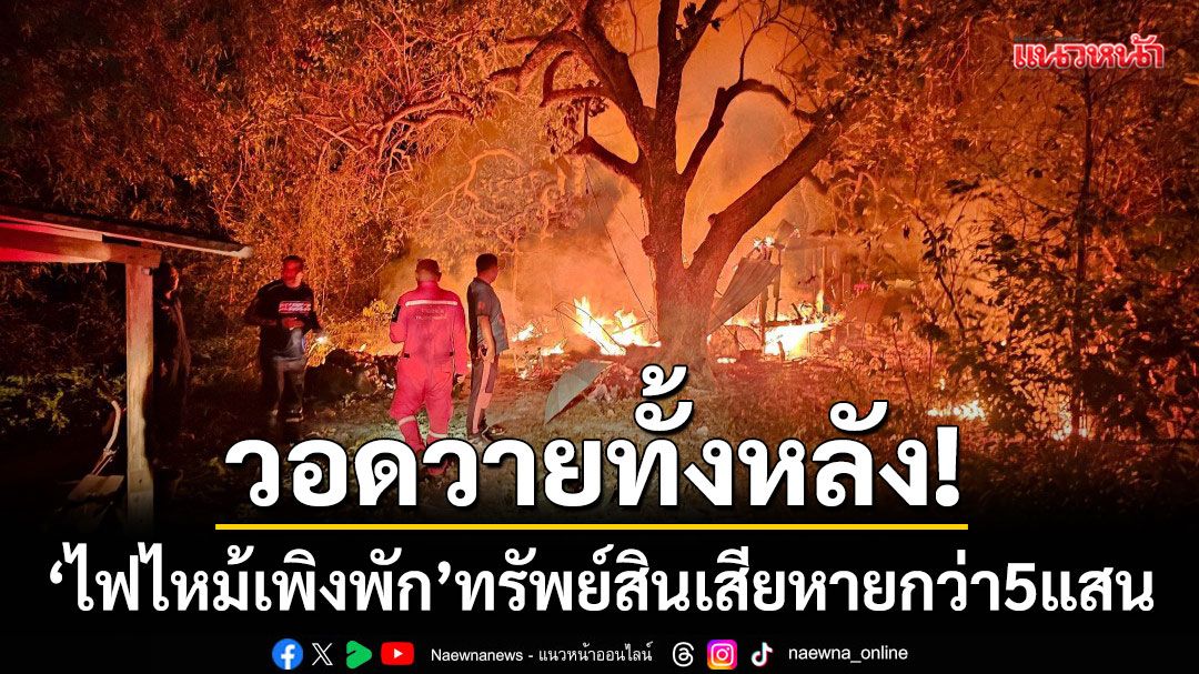 วอดทั้งหลัง! ไฟไหม้เพิงพักสัตหีบ เจ้าของปล่อยโฮกั้นไม่อยู่ ทรัพย์สินกว่า 5 แสนกลายเป็นเถ้าถ่านในพริบตา