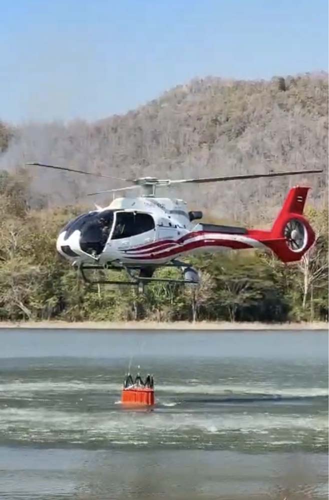 ต่อมา นายกานตพันธุ์ พิศาลสุขสกุล ผู้ตรวจราชการกระทรวงทรัพยากรธรรมชาติและสิ่งแวดล้อม (ผต.ทส.) ได้ดำเนินการตามข้อสั่งการของรองนายกรัฐมนตรีและรมว.ทส. รวมทั้ง ปกท.ทส. โดยสั่งการให้สนับสนุนเฮลิคอปเตอร์ จำนวน 1 ลำ บินทิ้งน้ำสนับสนุนการดับไฟป่า โดยทิ้งน้ำในจุดแรกจำนวน 19 เที่ยวบิน ปริมาณน้ำรวม 9,500 ลิตร และจุดที่สองจำนวน 5 เที่ยวบิน ปริมาณน้ำ 2,500 ลิตร รวมทั้งสิ้น 24 เที่ยวบิน ปริมาณน้ำรวม 12,000 ลิตร สามารถควบคุมและดับไฟในทั้งสองจุดได้สำเร็จ และยังคงมีเจ้าหน้าที่ภาคพื้นดินเฝ้าระวังสถานการณ์อย่างต่อเนื่อง จากนั้นเวลา 17.35 น. ปฏิบัติภารกิจแล้วเสร็จ และเดินทางกลับยังศูนย์ปฏิบัติการพื้นที่ภาคเหนือ รวมเวลาบินทั้งสิ้น 2 ชั่วโมง 40 นาที