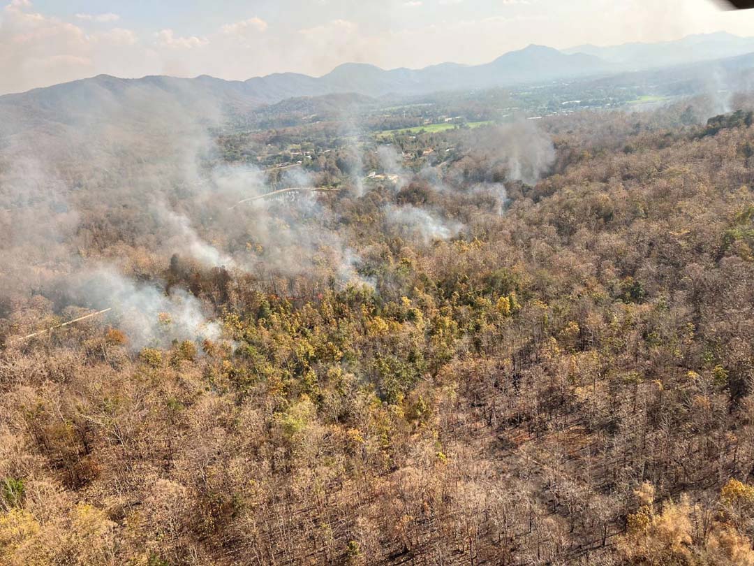 โดยศูนย์ปฏิบัติการพื้นที่ภาคเหนือ รายงานว่าจากการบินสำรวจ ตรวจพบไฟป่าบริเวณยอดเขาสูงชัน บริเวณพื้นที่ป่าสงวนแห่งชาติป่าแม่ออน และมีแนวโน้มลุกลามเข้าสู่เขตอุทยานแห่งชาติแม่ตะไคร้ โดยได้จัดชุดเจ้าหน้าที่สถานีควบคุมไฟป่าแม่ตะไคร้ 4 นาย เดินเท้าเข้าพื้นที่เพื่อควบคุมไฟ และชุดดับไฟป่าชุมชนบ้านแม่ออนกลางเฝ้าระวังบริเวณพื้นที่ด้านล่าง นอกจากนี้ ยังตรวจพบจุดไฟป่าใกล้เคียงทางทิศเหนืออีก 2 จุด ซึ่งมีความรุนแรงในระดับหนึ่ง แต่ไม่อยู่บนพื้นที่สูงชันมาก และอยู่ระหว่างประสานหน่วยงานที่เกี่ยวข้องเข้าควบคุมสถานการณ์