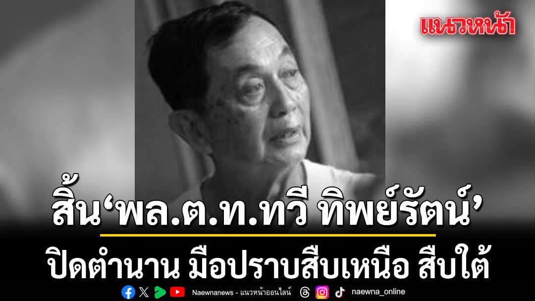 วันที่ 17 กุมภาพันธ์ 2569 เพจเฟซบุ๊ก สืบนครบาล IDMB โพสต์ข้อความระบุว่า ปิดตำนาน “มือปราบสืบเหนือ สืบใต้” พล.ต.ท.ทวี ทิพย์รัตน์ มือปราบที่ทั้งโจรเหนือและโจรใต้เกรงขาม