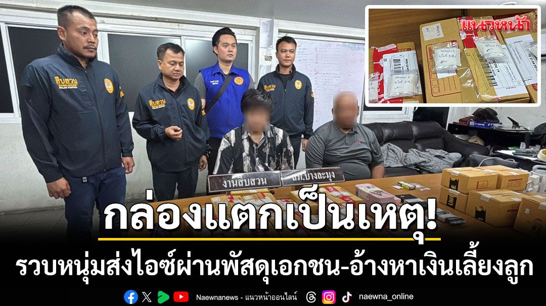กล่องแตกเป็นเหตุ! ตร.บางละมุงตามรวบหนุ่มส่งไอซ์ผ่านพัสดุเอกชน ก่อนขยายผลรวบเอเย่นต์คาพิกัดนัดล่อซื้อ อ้างหาเงินเลี้ยงลูก