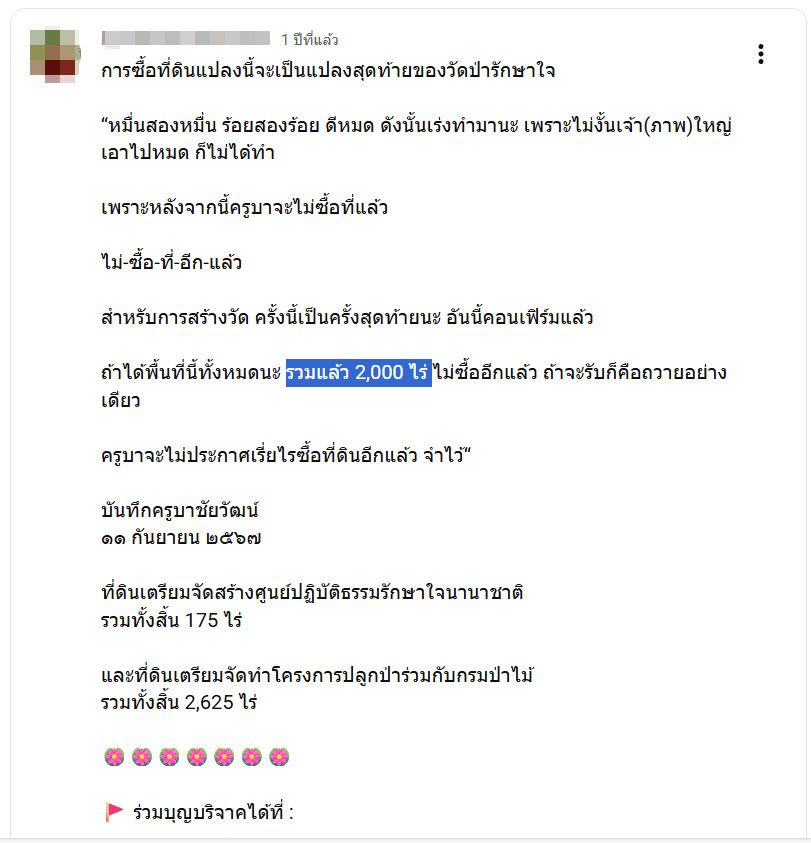 สำหรับปฏิบัติการเข้าตรวจสอบสถานะพื้นที่ในครั้งนี้ พบว่า จุดที่ 1 วัดป่ารักษาใจ อยู่ในเขตปฏิรูปที่ดินเพื่อการเกษตรกรรม พื้นที่ 13 ไร่ ปรากฎชื่อผู้ได้รับอนุญาตเข้าทำประโยชน์ในที่ดิน ตามเอกสาร สปก 4 – 01 แต่ผู้ได้รับอนุญาตตามเอกสาร ไม่ได้เข้าทำประโยชน์ในที่ดิน ต่อมาวัดป่ารักษาใจเข้ามาในพื้นที่ ในช่วงปี 2566 พบการก่อสร้างสิ่งปลูกสร้างเพิ่มเติมจากผู้เคยได้รับอนุญาตเดิม