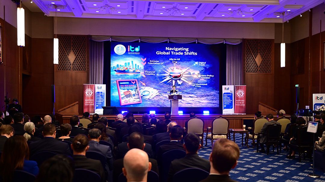 สถาบันระหว่างประเทศเพื่อการค้าและการพัฒนา (องค์การมหาชน) ITD ร่วมกับกระทรวงพาณิชย์ กระทรวงการต่างประเทศ UN Trade and Development (UNCTAD) และสมาคมนักเรียนเก่าฮาร์วาร์ดแห่งประเทศไทย จัดเวทีสัมมนาวิชาการนานาชาติหัวข้อ “Navigating Global Trade Shifts: Insights from the UNCTAD Trade and Development Report and Strategic Implications for Thailand” ณ ห้องวิเทศสโมสร กระทรวงการต่างประเทศ และผ่านระบบ Hybrid โดยมีผู้เข้าร่วมกว่า 150 คน จากภาครัฐ ภาคเอกชน สถาบันการศึกษา และองค์กรระหว่างประเทศ เพื่อร่วมกันวิเคราะห์ทิศทางเศรษฐกิจโลกจากรายงาน Trade and Development Report 2025 (TDR 2025) และกำหนดยุทธศาสตร์การค้าของไทยให้สอดรับกับบริบทโลกที่กำลังเปลี่ยนผ่านอย่างมีนัยสำคัญ