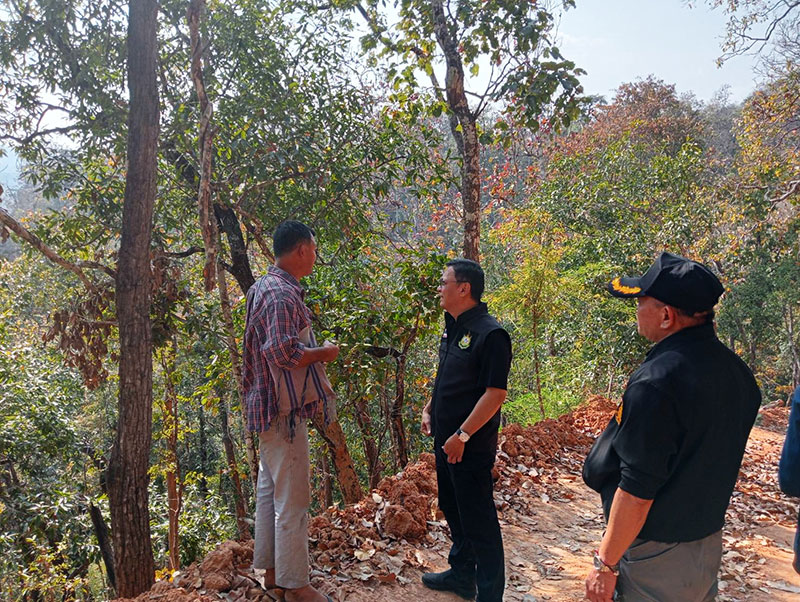 ทั้งนี้ ถนนเส้นนี้มีความ ยาว 6.6 กิโลเมตร สร้างเสร็จภายใน 2 เดือนนั้น สอบสวน ทราบว่าจนท.ของรัฐเข้าไปประชาสัมพันธ์กับชาวบ้านแอบอ้างว่าถนนเส้นนี้เป็นงบประมาณของหลวงจะรีบดำเนินการตัดให้แล้วเสร็จ เพื่ออำนวยความสะดวกให้ชาวบ้าน เมื่อมีการประชาคมชาวบ้านจึงไม่ขัดข้อง ซึ่งจริงแล้วยังไม่มีแผนที่จะทำถนนเส้นนี้ แต่มีผู้แอบอ้างซึ่งเป็น จนท.ของรัฐเอง ส่วนปัญหาถนนเส้นนี้มีมาตรการเร่งด่วนจำเป็นต้องปิดถนนก่อนทั้งหัวท้ายเพื่อจะไม่ให้ใช้ประโยชน์ ขั้นตอนต่อไปเร่งทำการฟื้นฟูให้กลับมาเป็นพื้นที่ป่าให้สมบูรณ์เหมือนเดิม