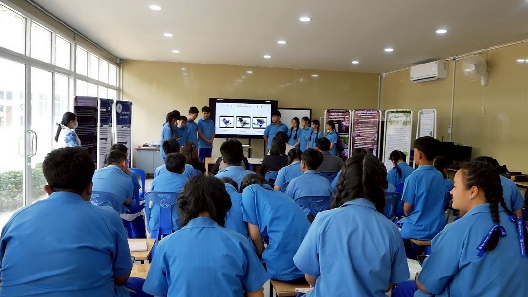 นอกจากทักษะด้านสิ่งประดิษฐ์ นักเรียนยังได้แสดงความสามารถด้านการสื่อสารภาษาอังกฤษผ่านกิจกรรมสุนทรพจน์ในหัวข้อ ‘My Hero’ รวมถึงการนำเสนอแนวคิดโครงงานวิชาการด้วยตนเองต่อสาธารณชน แสดงให้เห็นถึงความมั่นใจ และการวิเคราะห์ปัญหาอย่างเป็นระบบ ซึ่งเป็นทักษะสำคัญที่โลกอนาคตต้องการ