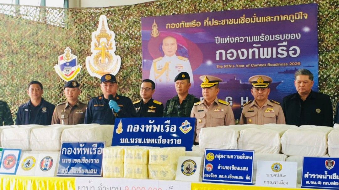 วันที่ 20 กุมภาพันธ์ 2569 ที่หน่วยเรือรักษาความสงบเรียบร้อยตามลำแม่น้ำโขง (นรข.) เขตเชียงราย อ.เชียงแสน จ.เชียงราย ได้มีการจัดแถลงข่าวครั้งใหญ่เพื่อรายงานผลการสกัดกั้นยาเสพติดลอตสำคัญตามนโยบายปราบปรามยาเสพติดอย่างเข้มงวดของรัฐบาล
