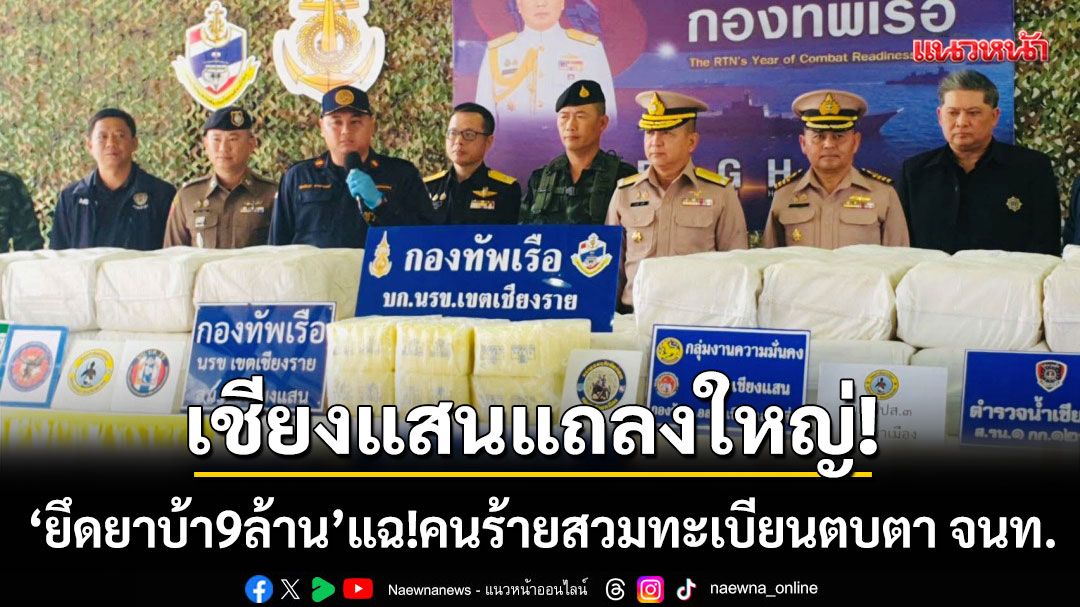 นรข.-กกล.ผาเมือง แถลงยึดยาบ้า 9,000,000 เม็ด ซุกกระบะริมโขงบ้านแซว แฉคนร้ายสวมทะเบียนปลอมอำพรางสายตา จนท.