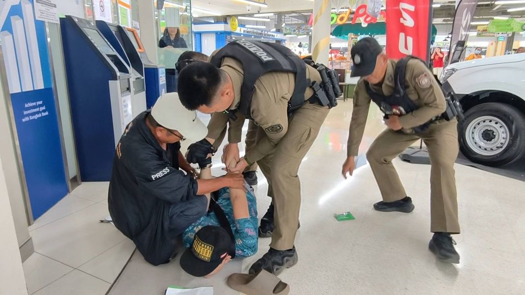พบชายหนุ่มคนหนึ่งสะพายกระเป๋าสวมเสื้อยืดแขนสั้นสีฟ้า กางเกงยีนส์สีดำ สวมรองเท้าแตะ กำลังแสดงอาการเอะอะโวยวายอยู่ เจ้าหน้าที่จึงขอให้สงบสติอารมณ์ แต่ชายคนดังกล่าวมีอาการหงุดหงิด และกระวนกระวายคล้ายคนเสพยาเสพติด ส่งเสียงโวยวายและทุบโต๊ะด่าทอพนักงานธนาคาร ตำรวจสายตรวจจึงจำเป็นต้องล็อกตัวตามยุทธวิธี พร้อมนำตัวไปตรวจปัสสาวะที่โรงพัก เพื่อหาสารเสพติดในร่างกาย เบื้องต้นฉี่เป็นสีม่วง เจ้าหน้าที่จึงได้แจ้งข้อกล่าวหาว่า เสพยาเสพติดให้โทษประเภท 1 (เมทแอมเฟตามีน) โดยฝ่าฝืนต่อกฎหมาย