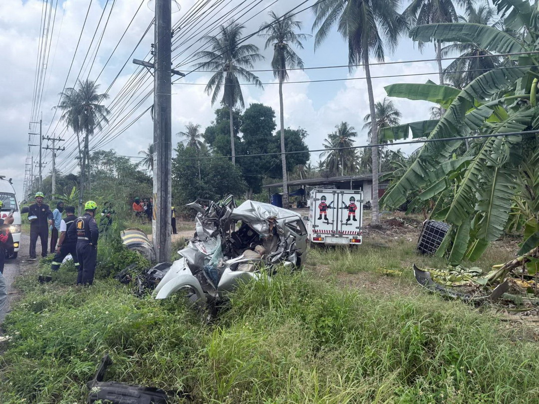 วันที่ 20 กุมภาพันธ์ 2569 เจ้าหน้าที่ตำรวจ สภ.ธงชัย ได้รับแจ้งเหตุอุบัติเหตุรถยนต์นั่งส่วนบุคคลเสียหลักตกข้างทางชนเสาไฟฟ้า มีผู้เสียชีวิตติดภายในหลายราย บนถนนเพชรเกษม ขาขึ้นกรุงเทพมหานคร บริเวณหลักกิโลเมตรที่ 370 พื้นที่บ้านหนองจันทร์ ต.ชัยเกษม อ.บางสะพาน จ.ประจวบคีรีขันธ์