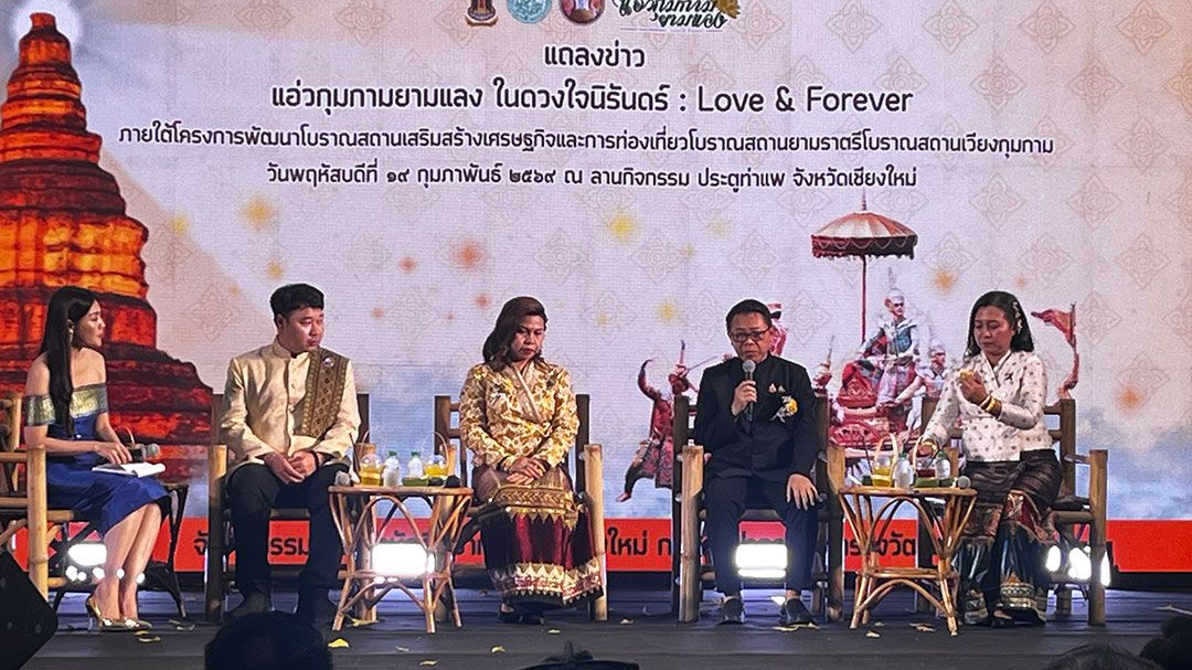 ผู้สื่อข่าวรายงานว่า กรมศิลปากร สำนักศิลปากรที่ 7 เชียงใหม่ ในฐานะหน่วยงานภายใต้กระทรวงวัฒนธรรมจัดแถลงข่าว แอ่วกุมกามยามแลง ในดวงใจนิรันดร์ Love and Forever” โดยมี นายชินณวุฒิ. วิลยาลัย ผู้อำนวยการสำนักศิลปากรที่ 7 เชียงใหม่ นางสาวปุณณภา สุขสาคร ผู้อำนวยการหอสมุดแห่งชาติรัชมังคลาภิเษกเชียงใหม่ นางเกษราภรณ์ กุณรักษ์ หัวหน้าหอจดหมายเหตุแห่งชาติฯ เชียงใหม่ นายณัฐพงษ์ แมตสอง หัวหน้าพิพิธภัณฑสถานแห่งชาติ หริภุญไชย ร่วมแถลง ณ ลานประตูท่าแพ