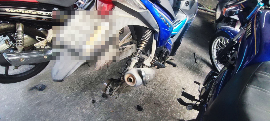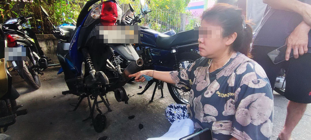 ในที่เกิดเหตุพบ น.ส.นุชนานถ อายุ 51 ปี (ผู้เสียหาย) ยืนรอให้การด้วยอาการตกใจ พร้อมพาเจ้าหน้าที่ไปดูรถจักรยานยนต์ ยี่ห้อ Honda Wave สีฟ้า-ขาว ทะเบียนกรุงเทพมหานคร ที่อยู่ในสภาพน่าเวทนา โดยล้อแม็กทั้งล้อหน้าและล้อหลังถูกคนร้ายถอดออกไปจนหมด เหลือเพียงตัวรถที่ตั้งอยู่กับพื้นลานจอดรถ