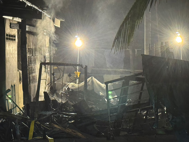 ที่เกิดเหตุเป็นลักษณะเพิงเก่าที่ต่อเติมออกจากตัวบ้าน ใช้สำหรับเป็นที่เก็บของและห้องนอน เจ้าหน้าที่ดับเพลิงเร่งฉีดน้ำสกัดจนสามารถควบคุมเพลิงไว้ได้ ตรวจสอบภายในกองเพลิงพบร่างผู้เสียชีวิตคือ นายบรรเจิด อายุ 62 ปี อาชีพค้าขาย สภาพถูกไฟคลอกเสียชีวิตอยู่ภายใน